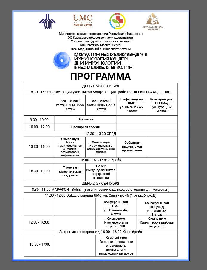 Адрес и место проведения: г. Астана, конференц-холл отеля «SAAD», ул. Достык, 2, 3 этаж, с онлайн-трансляцией на сайте МедЗнания.
